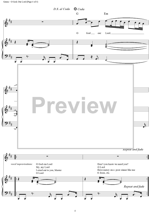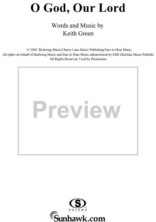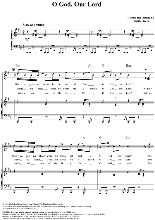 Digital Sheet Music for O God, Our Lord by Keith Green scored for Piano/Vocal/Chords; id:119093