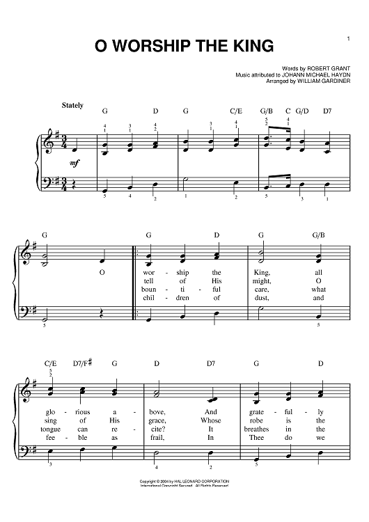 Digital Sheet Music for O Worship The King by William Gardiner, Johann Michael Haydn, Robert Graham scored for Easy Piano; id:381096