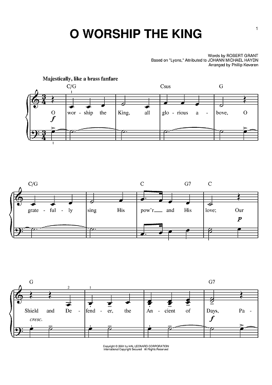 Digital Sheet Music for O Worship The King by Robert Grant, Johann Michael Haydn, Phillip Keveren scored for Easy Piano; id:396480