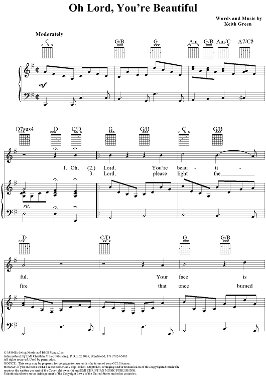 Digital Sheet Music for Oh Lord, You're Beautiful by Keith Green scored for Piano/Vocal/Chords; id:95552
