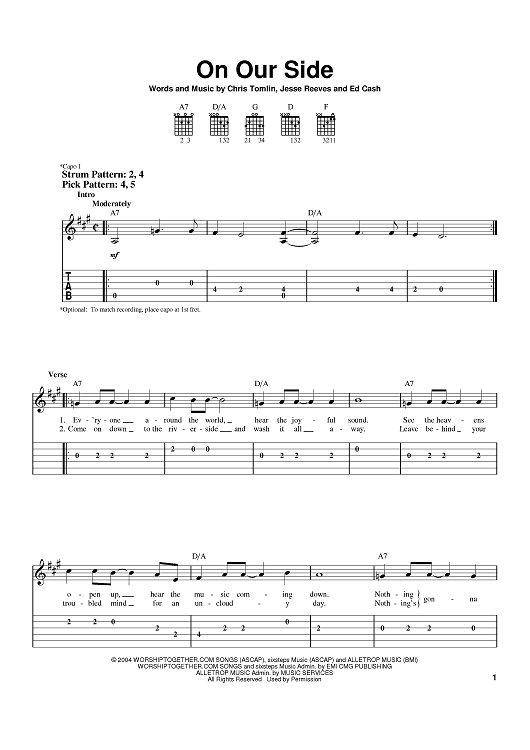 Digital Sheet Music for On Our Side by Chris Tomlin, Jesse Reeves, Ed Cash scored for Easy Guitar Tab; id:395303
