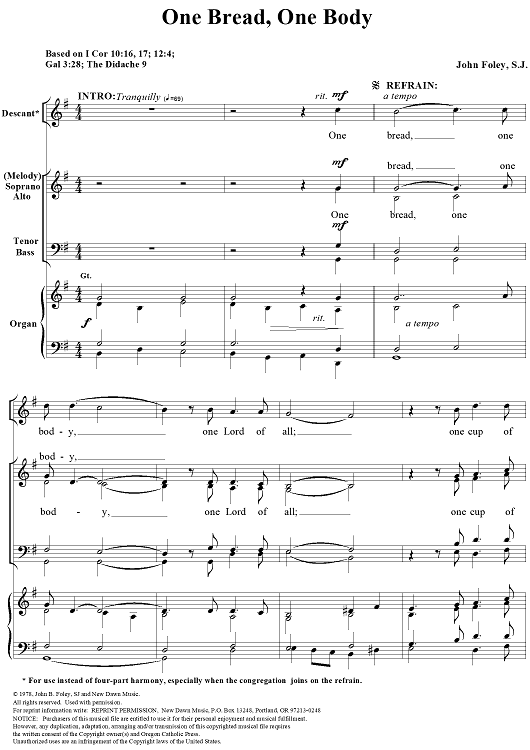 "One Bread, One Body - Score" Sheet Music by John Foley, SJ