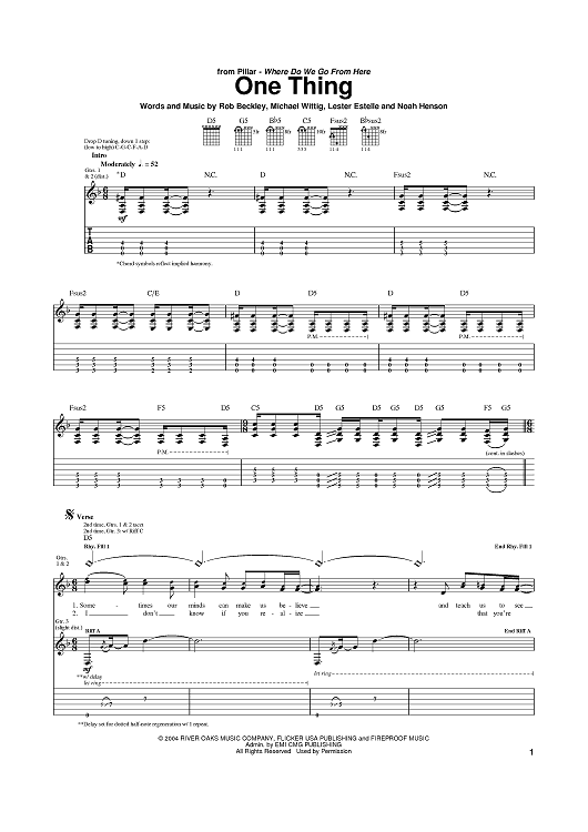 Digital Sheet Music for One Thing by Rob Beckley, Lester Estelle, Noah Henson, Pillar, Kalel scored for Guitar Tab; id:380287