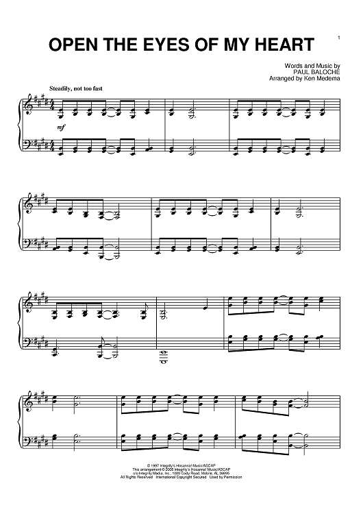 Digital Sheet Music for Open The Eyes Of My Heart by Paul Baloche, Ken Medema, Praise, Sonicflood scored for Piano; id:384615