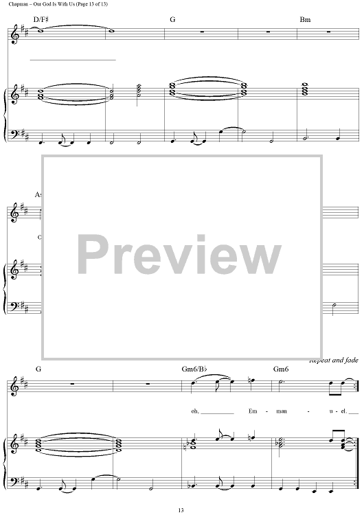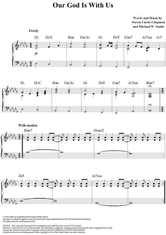 Digital Sheet Music for Our God Is With Us by Steven Curtis Chapman, Michael W. Smith scored for Piano/Vocal/Chords; id:119046
