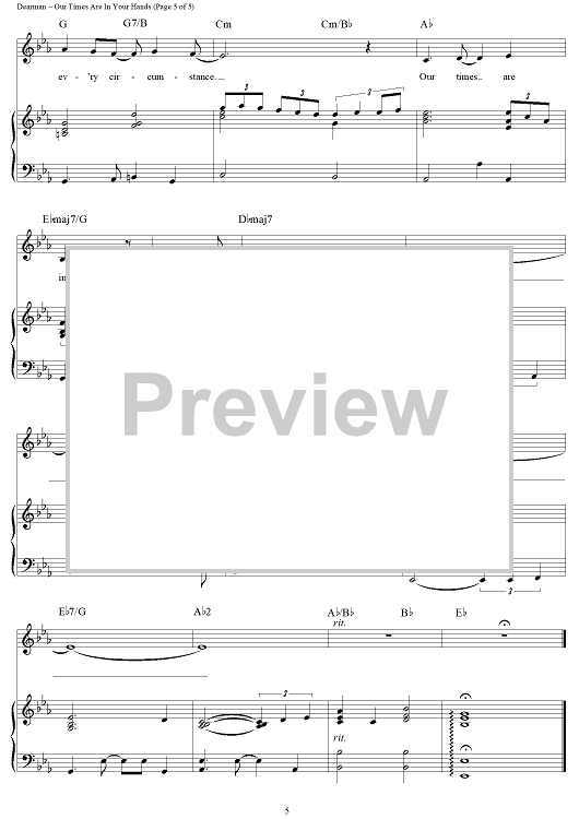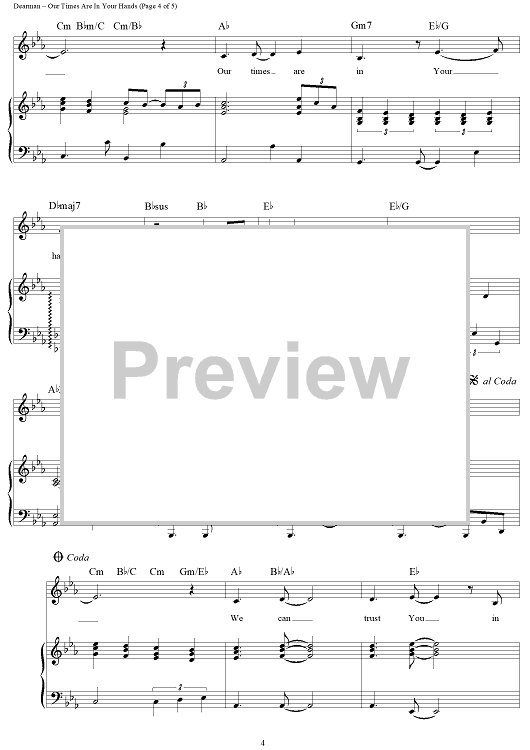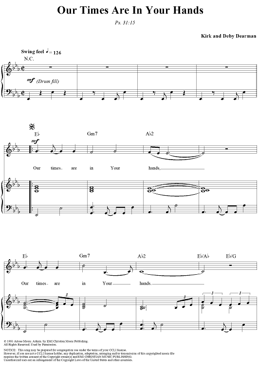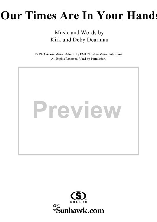 Digital Sheet Music for Our Times Are in Your Hands by Kirk Dearman, Deby Dearman scored for Piano/Vocal/Chords; id:113821