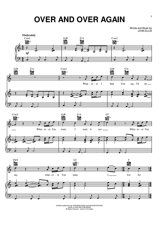 Digital Sheet Music for Over And Over Again by John Ellis, Tree63 scored for Piano/Vocal/Chords; id:382079