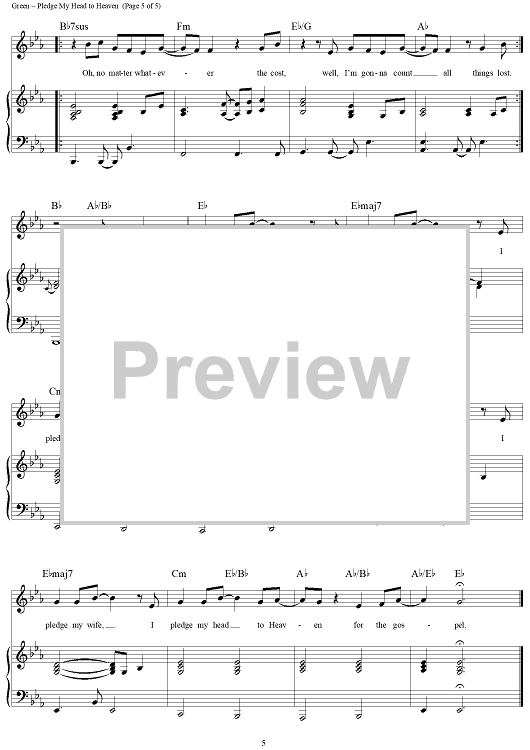 "Pledge My Head to Heaven" Sheet Music by Keith Gordon Green