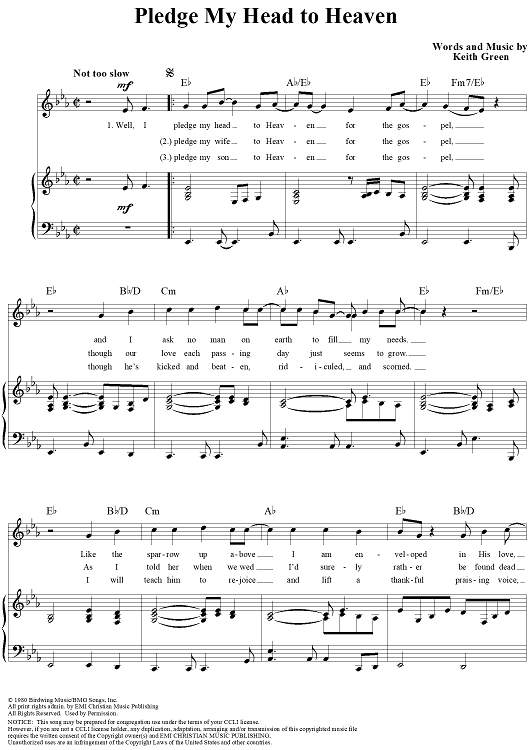 Digital Sheet Music for Pledge My Head to Heaven by Keith Green scored for Piano/Vocal/Chords; id:111208