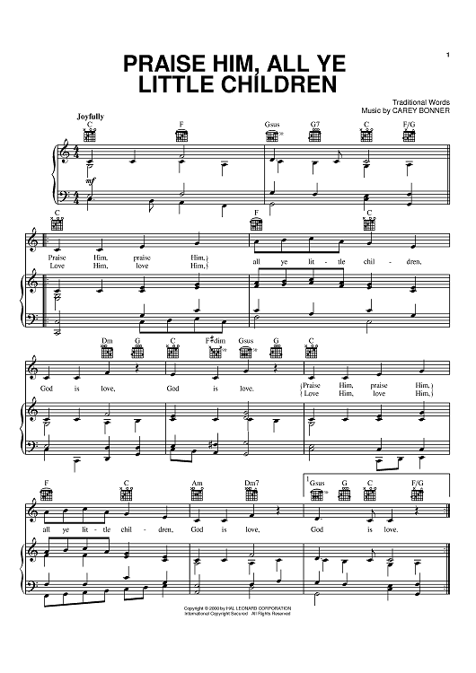 Digital Sheet Music for Praise Him, All Ye Little Children by Carey Bonner scored for Piano/Vocal/Chords; id:370494