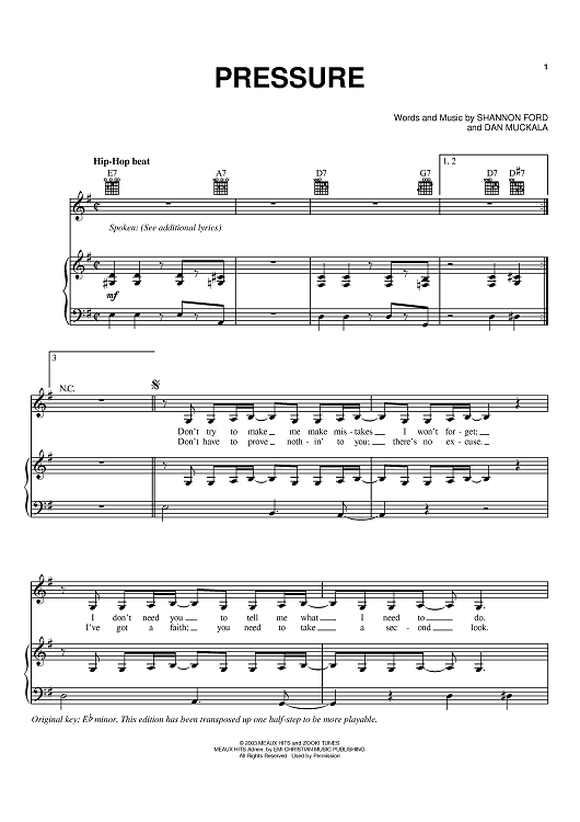 Digital Sheet Music for Pressure by Shannon Ford, Jump5, Dan Muckala scored for Piano/Vocal/Chords; id:372997