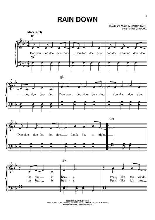 Digital Sheet Music for Rain Down by Martin Smith, Stu G, Delirious? scored for Easy Piano; id:383370