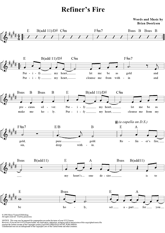 Digital Sheet Music for Refiner's Fire by Brian Doerksen scored for Lead Sheet; id:110870