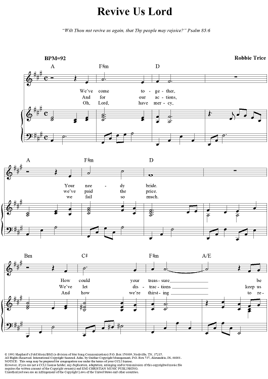 Digital Sheet Music for Revive Us Lord by Robbie Trice scored for Piano/Vocal/Chords; id:111702