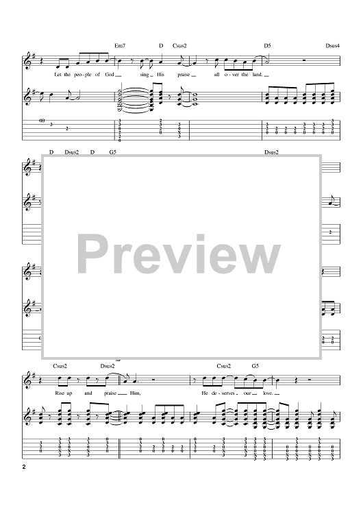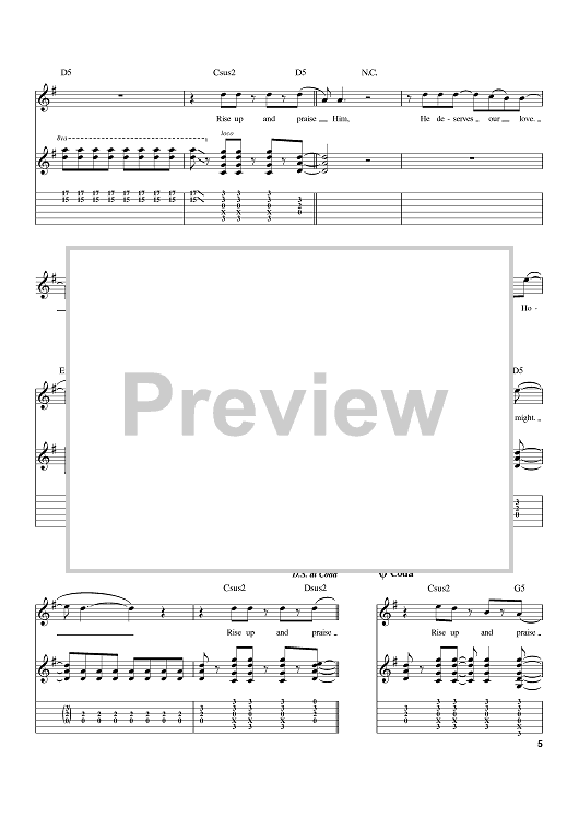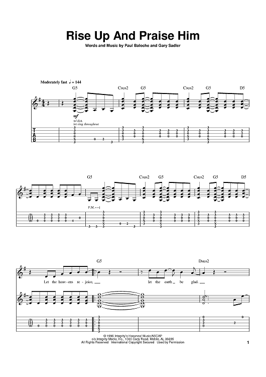 Digital Sheet Music for Rise Up And Praise Him by Gary Sadler, Paul Baloche scored for Guitar Tab; id:394868