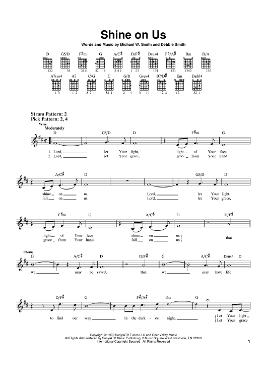 Digital Sheet Music for Shine On Us by Michael W. Smith, Debbie Smith, Phillips, Craig and Dean scored for Easy Guitar; id:398208