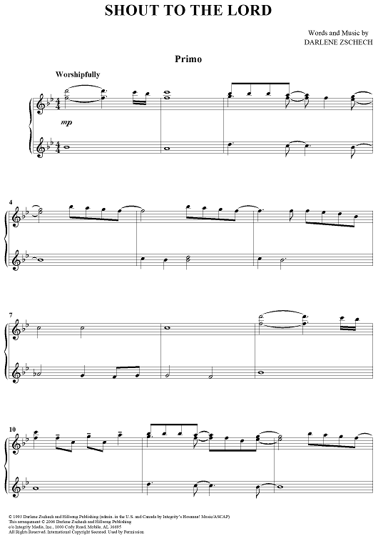 Digital Sheet Music for Shout To The Lord by Carman, Darlene Zschech scored for 1 Piano, 4 Hands; id:393381