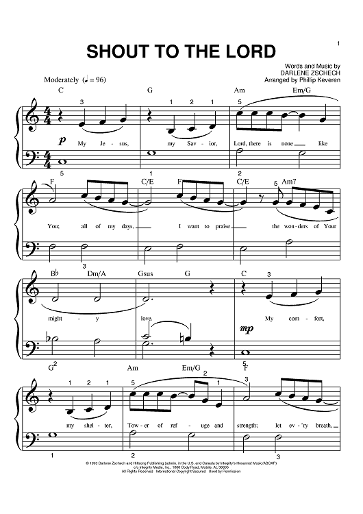 Digital Sheet Music for Shout To The Lord by Darlene Zschech, Phillip Keveren scored for Big Note Piano; id:396882