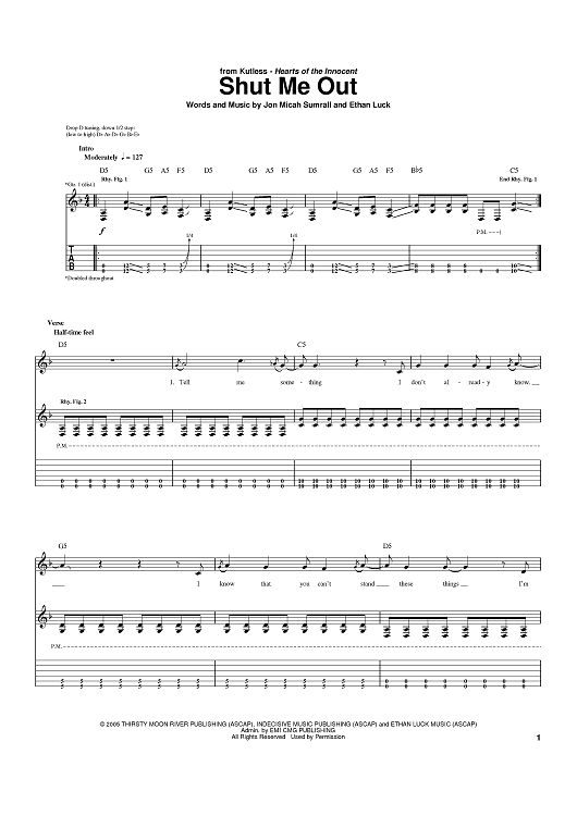 Digital Sheet Music for Shut Me Out by Jon Micah Sumrall, Kutless, Ethan Luck scored for Guitar Tab; id:393241