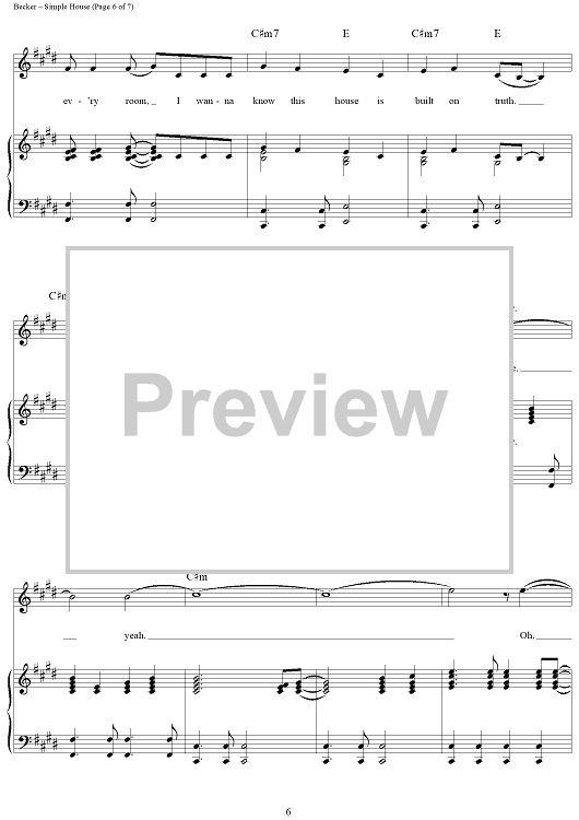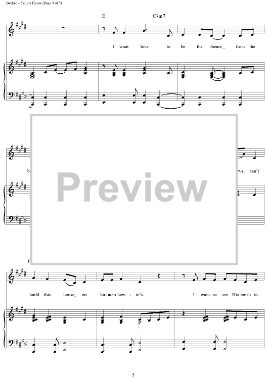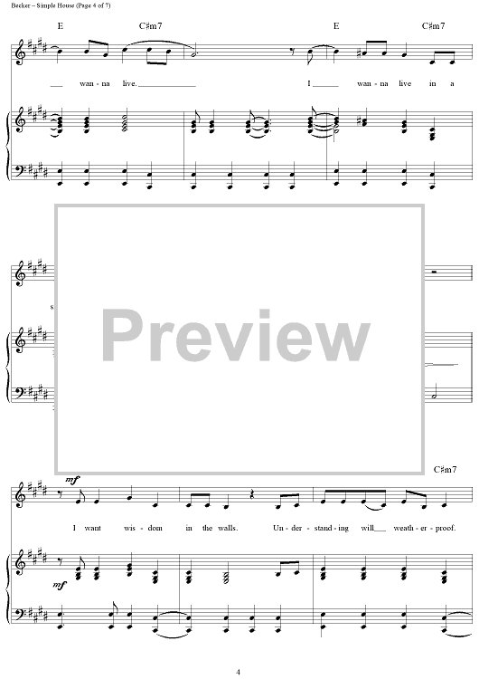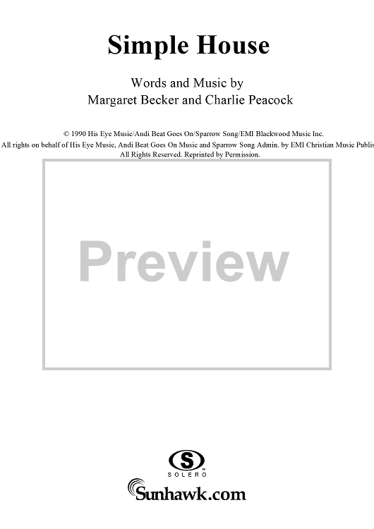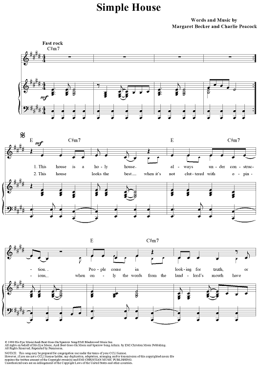 Digital Sheet Music for Simple House by Margaret Becker, Charlie Peacock scored for Piano/Vocal/Chords; id:119154