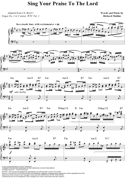 "Sing Your Praise to the Lord" Sheet Music by Richard Mullins