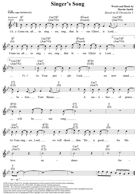 Digital Sheet Music for Singer's Song by , Martin Smith, Delirious? scored for Lead Sheet; id:95658