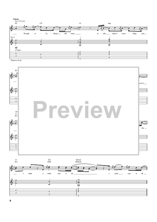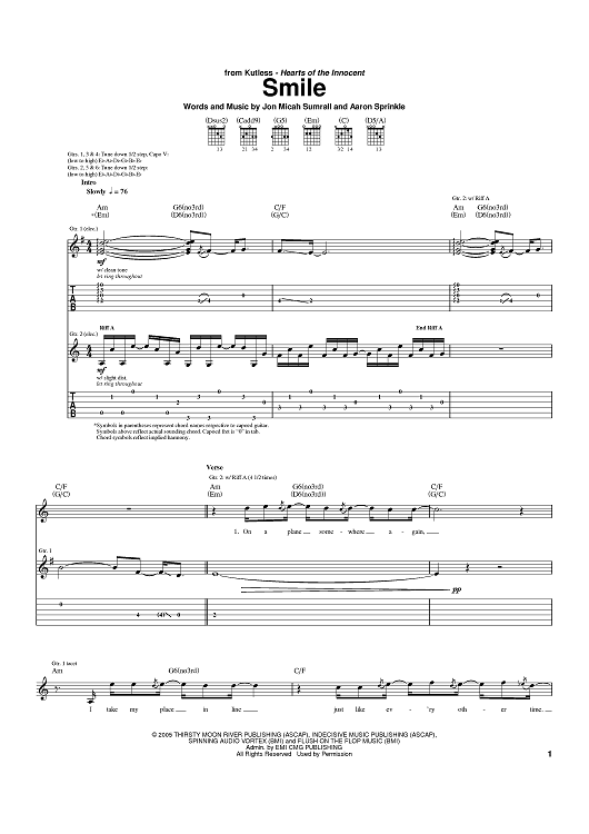 Digital Sheet Music for Smile by Jon Micah Sumrall, Wild Boar, Kutless scored for Guitar Tab; id:393240
