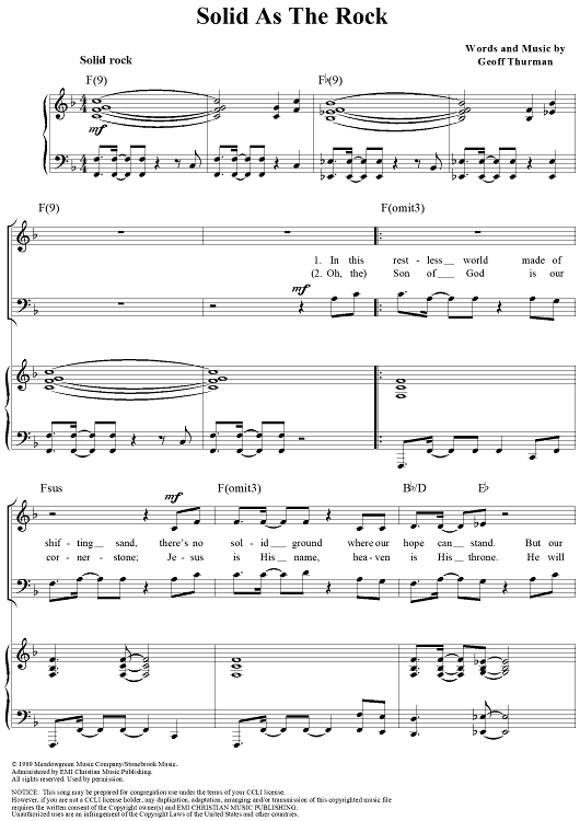 Digital Sheet Music for Solid As The Rock by Michael English, Geoffrey P. Thurman scored for Piano/Vocal/Chords; id:119350