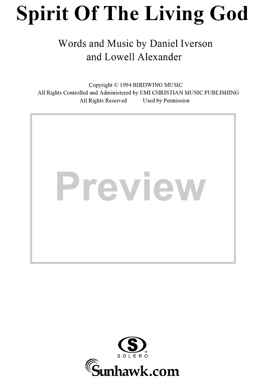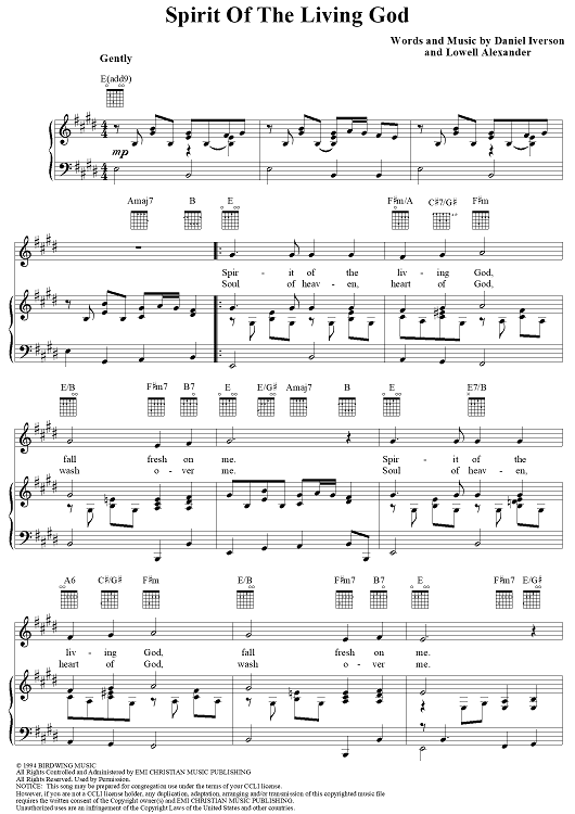 Digital Sheet Music for Spirit of the Living God by Lowell Alexander, Daniel Iverson scored for Piano/Vocal/Chords; id:112477