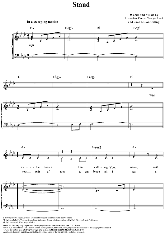 Digital Sheet Music for Stand by Susan Ashton, Lorraine Ferro, Tanya Leah, Joanne Sonderling scored for Piano/Vocal/Chords; id:119151