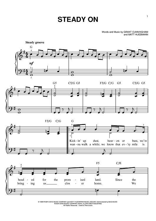 Digital Sheet Music for Steady On by Matt Huesmann, Point of Grace, Grant Cunningham scored for Easy Piano; id:383467