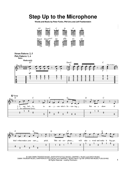 Digital Sheet Music for Step Up To The Microphone by Peter Furler, Newsboys, Jeff Frankenstein, Phil Urry scored for Easy Guitar Tab; id:371649