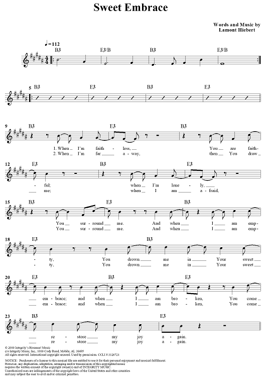 Digital Sheet Music for Sweet Embrace by Lamont Hiebert scored for Lead Sheet; id:314545