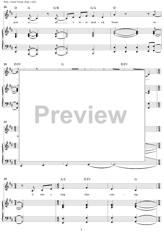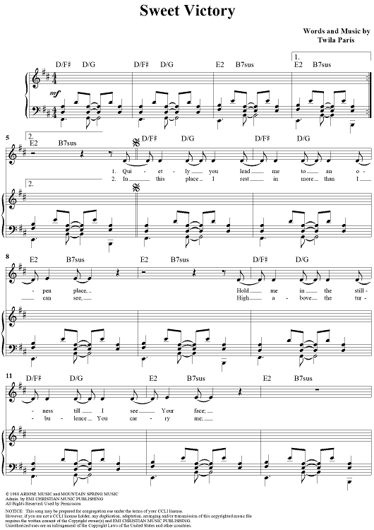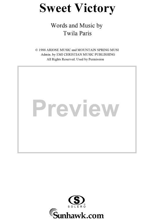 Digital Sheet Music for Sweet Victory by Twila Paris scored for Piano/Vocal/Chords; id:113937