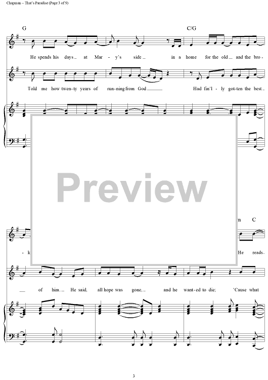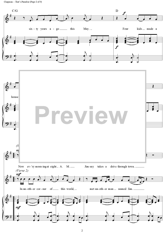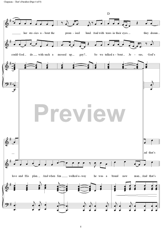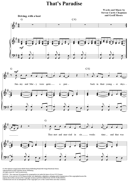 Digital Sheet Music for That's Paradise by Geoff Moore, Steven Curtis Chapman scored for Piano/Vocal/Chords; id:119076