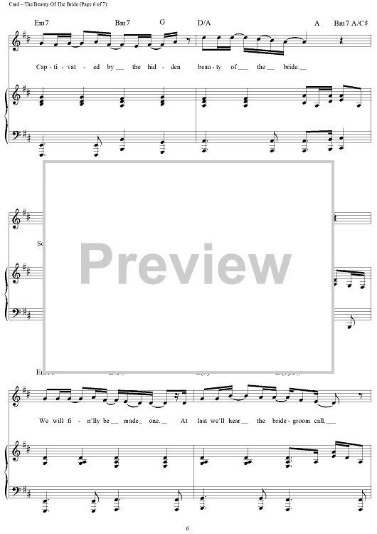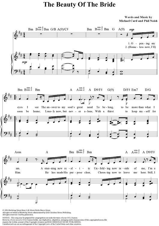Digital Sheet Music for The Beauty of the Bride by Michael Card, Phil Naish scored for Piano/Vocal/Chords; id:119200