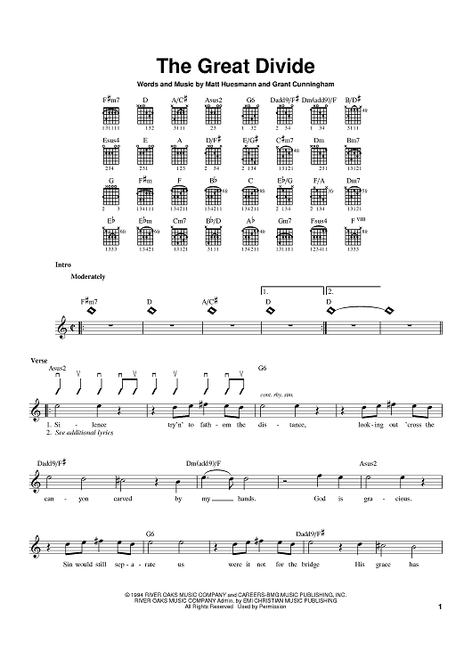 Digital Sheet Music for The Great Divide by Matt Huesmann, Point of Grace, Grant Cunningham scored for Lead Sheet with Guitar Grids; id:372191