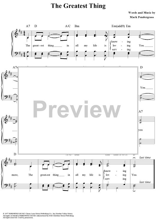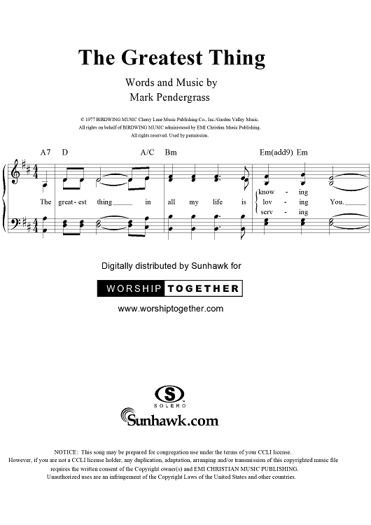 Digital Sheet Music for The Greatest Thing by Mark Pendergrass, Praise and Worship scored for Four-part Mixed Chorus; id:254831