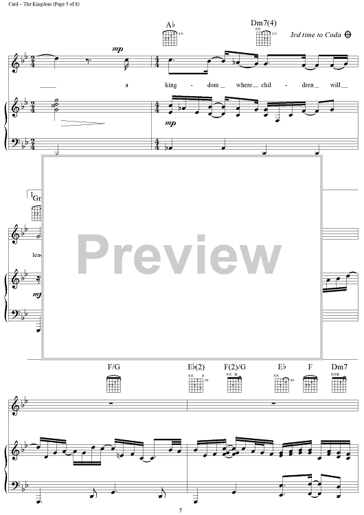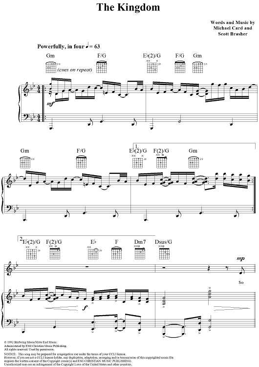 Digital Sheet Music for The Kingdom by Michael Card, Scott Brasher scored for Piano/Vocal/Chords; id:119211