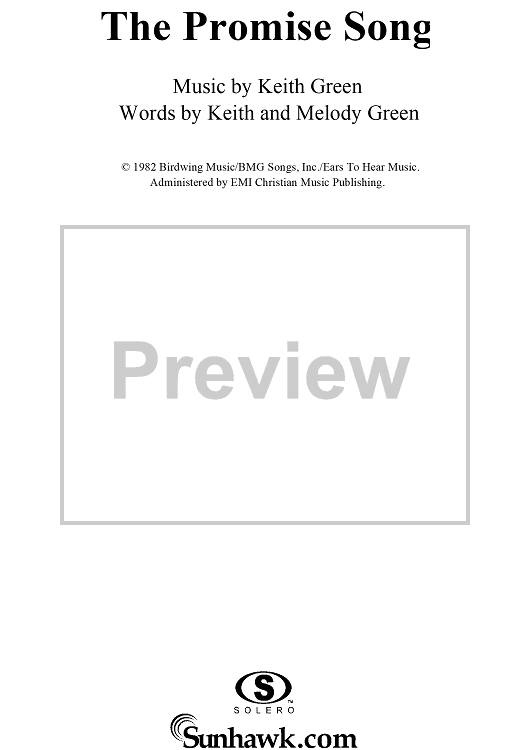 Digital Sheet Music for The Promise Song by Keith Green, Melody Green scored for Piano/Vocal/Chords; id:113292
