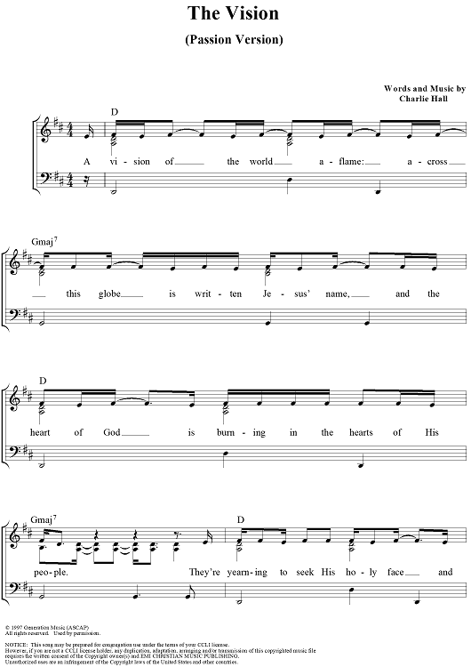 Digital Sheet Music for The Vision (Passion Version) by Charlie Hall scored for Piano/Vocal/Chords; id:109014