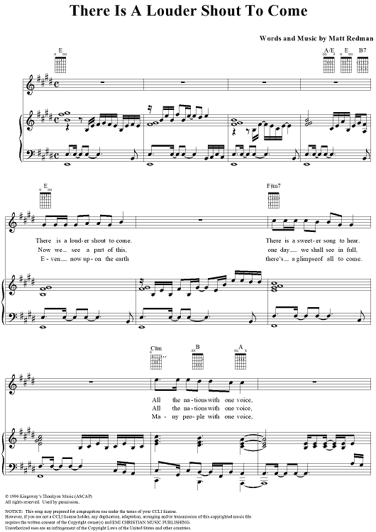 Digital Sheet Music for There Is A Louder Shout To Come by Matt Redman scored for Piano/Vocal/Chords; id:95449
