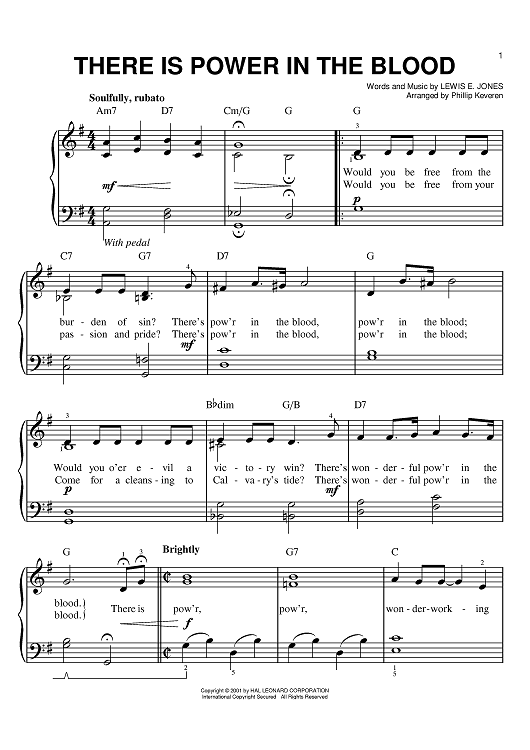 Digital Sheet Music for There Is Power In The Blood by Lewis E. Jones, Phillip Keveren scored for Easy Piano; id:382220