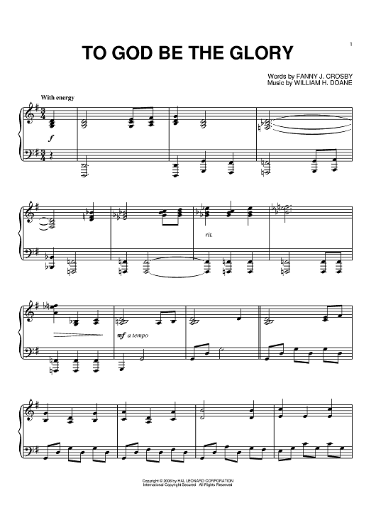 Digital Sheet Music for To God Be The Glory by Fanny Crosby, William H. Doane scored for Piano; id:393261