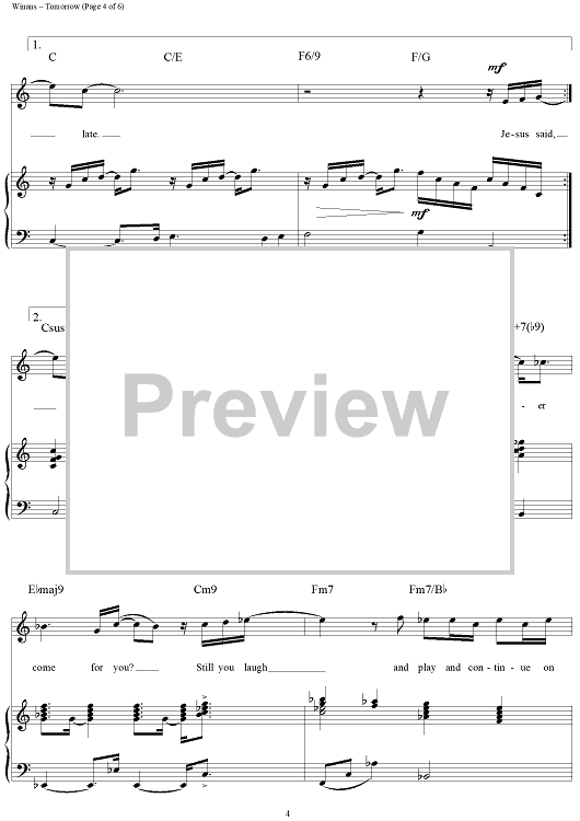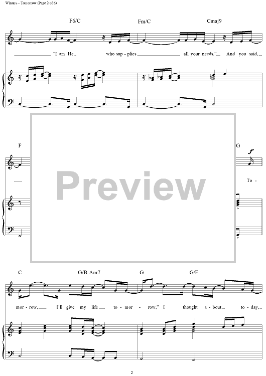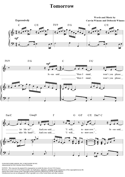 Digital Sheet Music for Tomorrow by Carvin Winans, Deborah Winans, The Winans scored for Piano/Vocal/Chords; id:119604