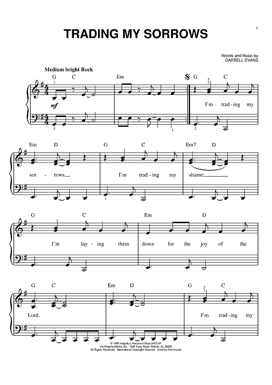 "Trading My Sorrows" Sheet Music by Darrell Wayne Evans