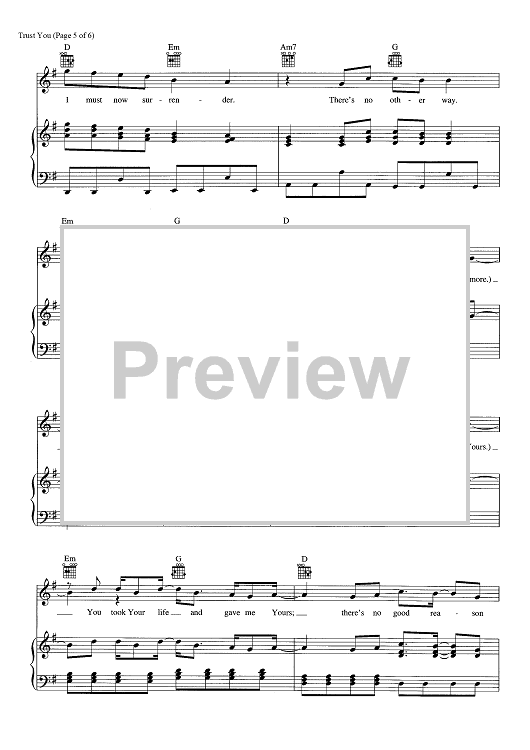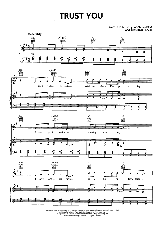 Digital Sheet Music for Trust You by Jason Ingram, Brandon Heath scored for Piano/Vocal/Chords; id:460441