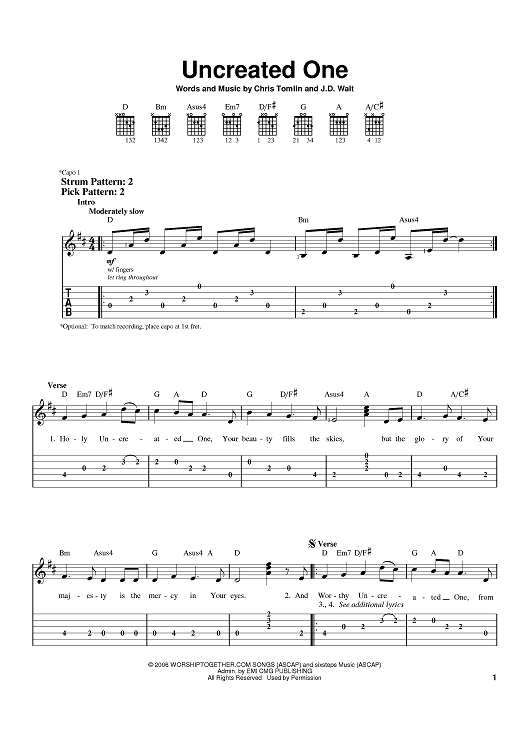Digital Sheet Music for Uncreated One by Chris Tomlin, J. D. Walt scored for Easy Guitar Tab; id:396963