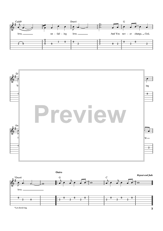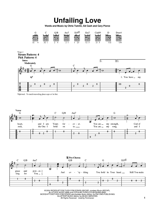 Digital Sheet Music for Unfailing Love by Chris Tomlin, Ed Cash, Cary Pierce scored for Easy Guitar Tab; id:395304