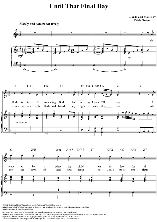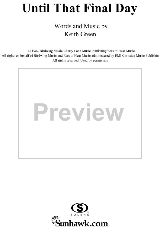 Digital Sheet Music for Until That Final Day by Keith Green scored for Piano/Vocal/Chords; id:119092